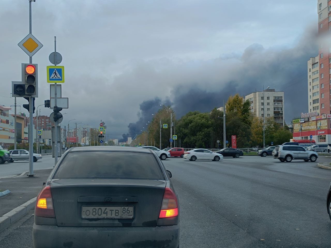 Внушительный столб дыма в Тюмени в районе Стрелы виден издалека.