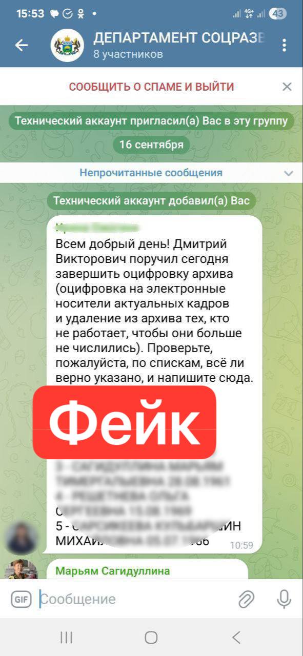 Аферисты начали создавать фейковые чаты в telegram от имени департамента социального развития Тюменской области.