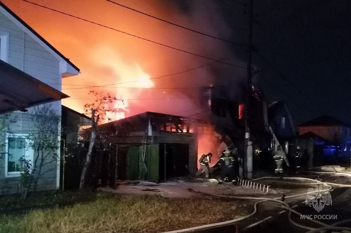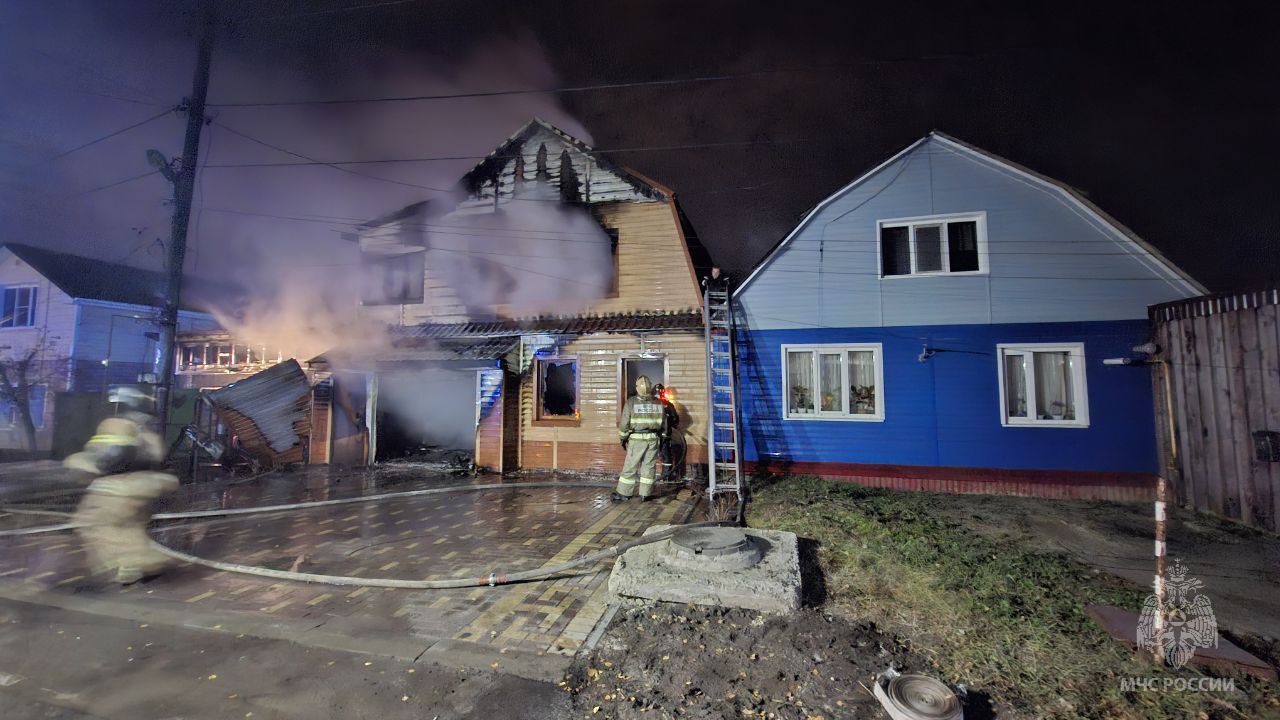 В Тюмени пожарные тушили частный дом на улице Депутатской. Сообщение о ЧП поступило около девяти часов вечера 28 октября. Огонь охватил также постройку, находящуюся вблизи. Огонь рисковал распространиться на соседние здания.