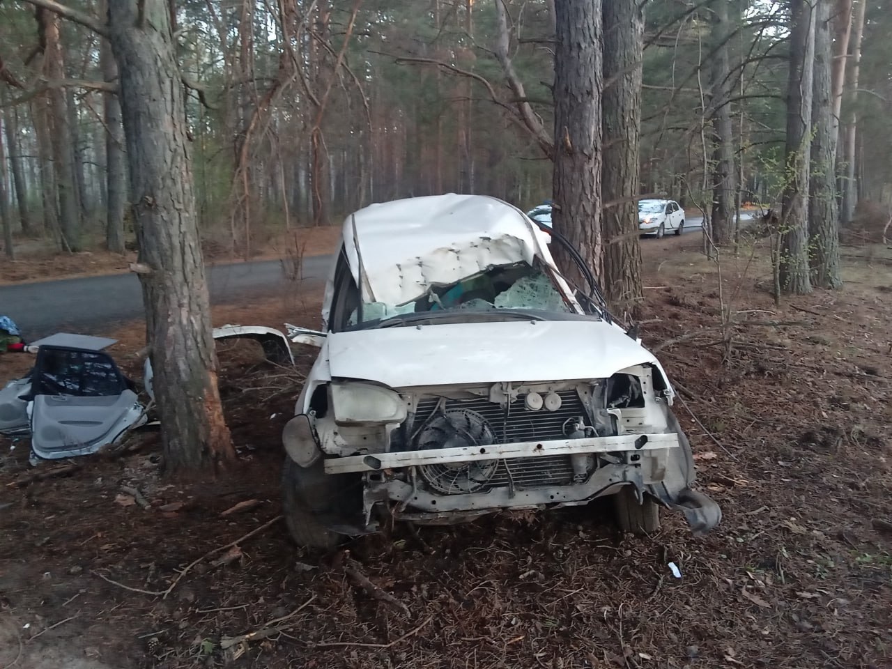 Его автомобиль съехал в кювет и врезался в дерево.