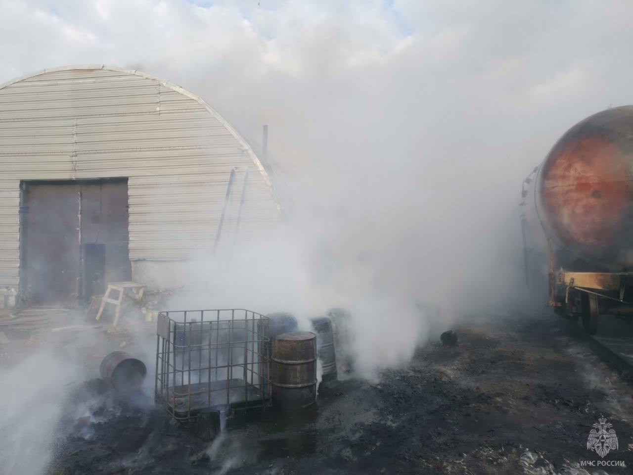 Горит мусор и сухая растительность. Сообщение о ЧП поступило около 19 часов вечера 14 июля. К моменту прибытия первых пожарно-спасательных подразделений огонь перекинулся на рядом стоящий ангар.