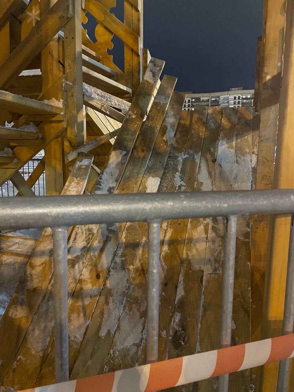 Сегодня вечером на площади 400-летия Тюмени обрушилась деревянная горка. На место происшествия прибыла бригада скорой помощи. Прокуратура Тюменской области организовала проверку для установления причин произошедшего.