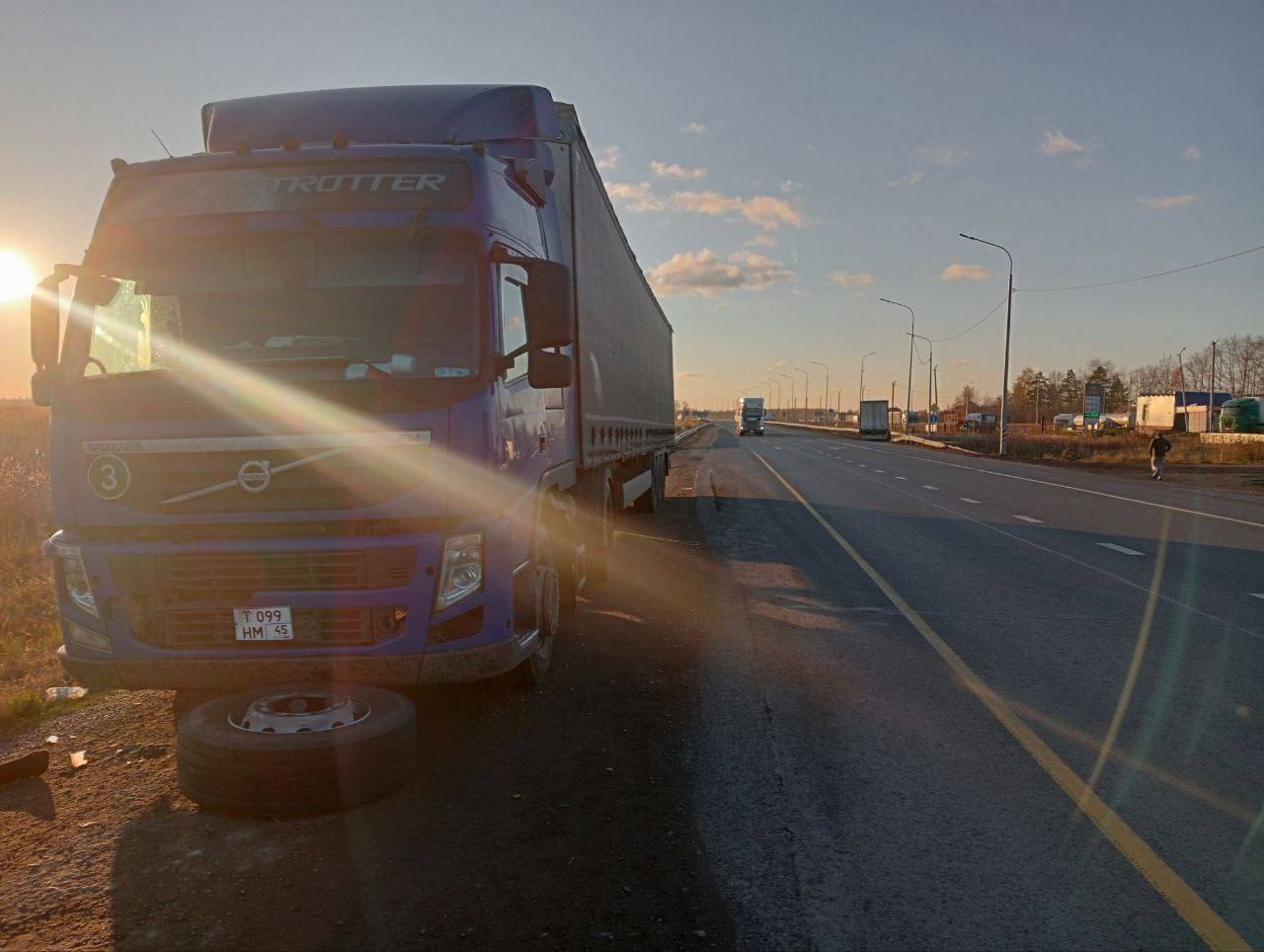 Колесо отбросило на 63-летнего мужчину, стоявшего на обочине около своего грузовика «Вольво».
