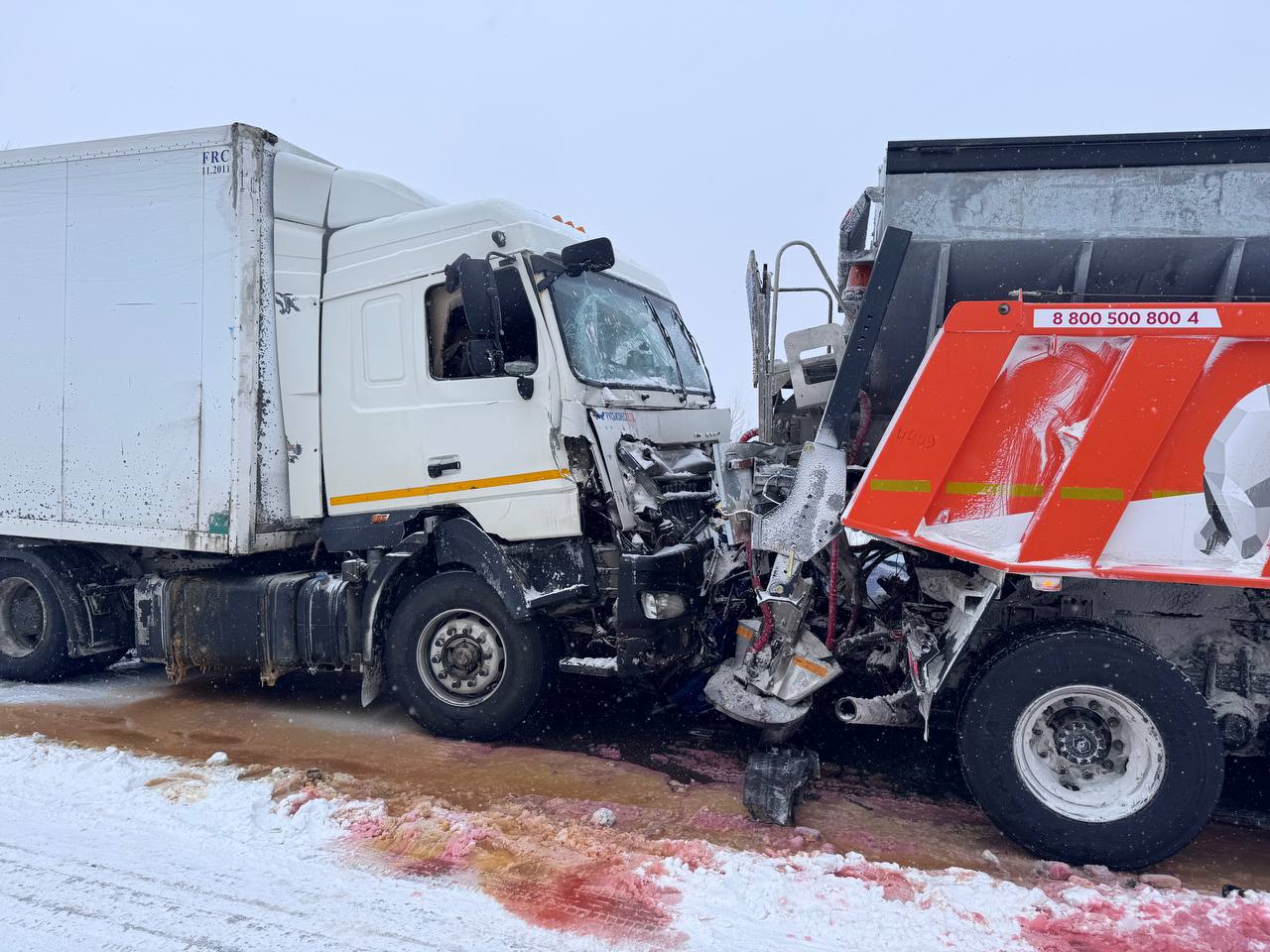 Далее в КДМ въехал автомобиль «Киа Риа», в него — большегруз «МАЗ», из-за чего легковой автомобиль зажало между дорожной машиной и большегрузом. В «МАЗ» въехал автомобиль «Мазда».