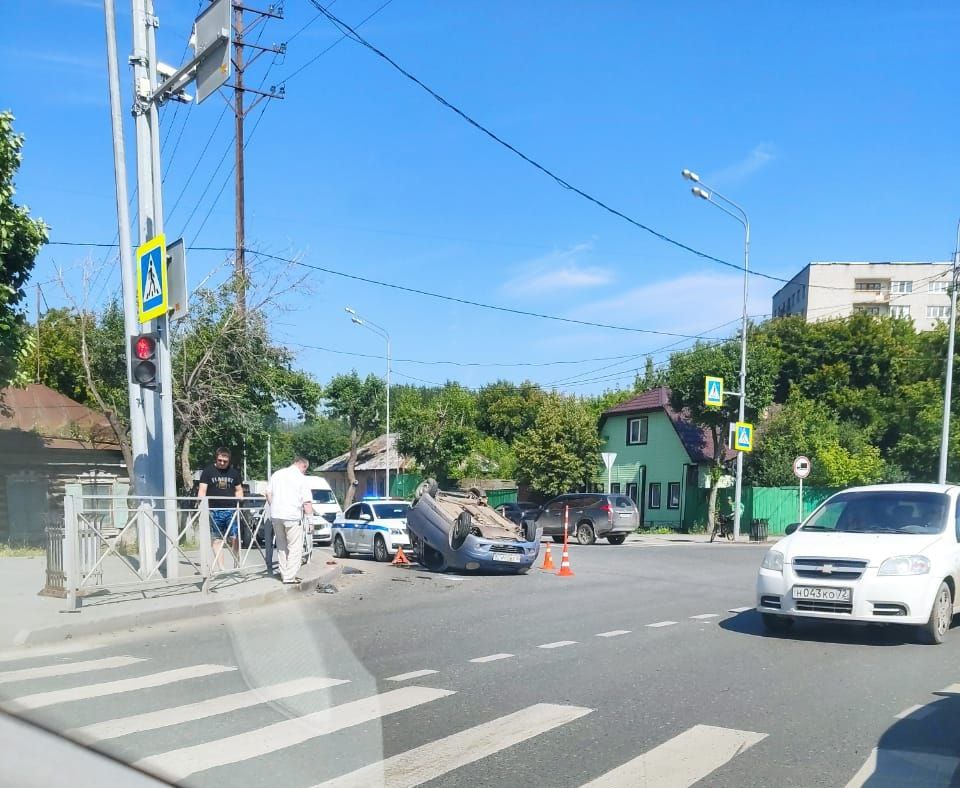 На углу улиц Холодильной и 50 лет ВЛКСМ в Тюмени в результате ДТП перевернулся «Дэу Матиз».