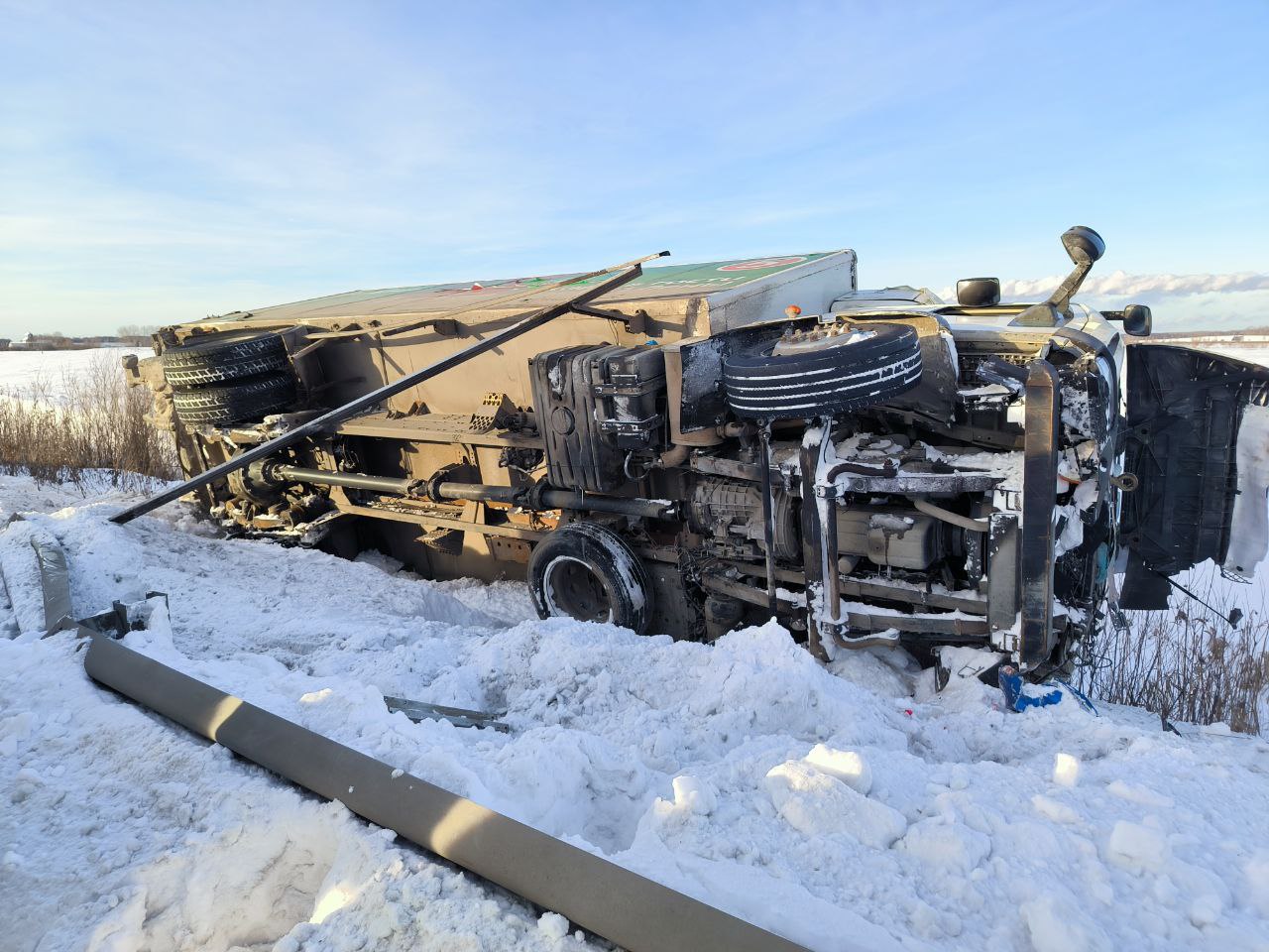 От удара машину отбросило на ограждение, и они вместе упали в кювет. При этом грузовик «подмял» под себя малолитражку.
