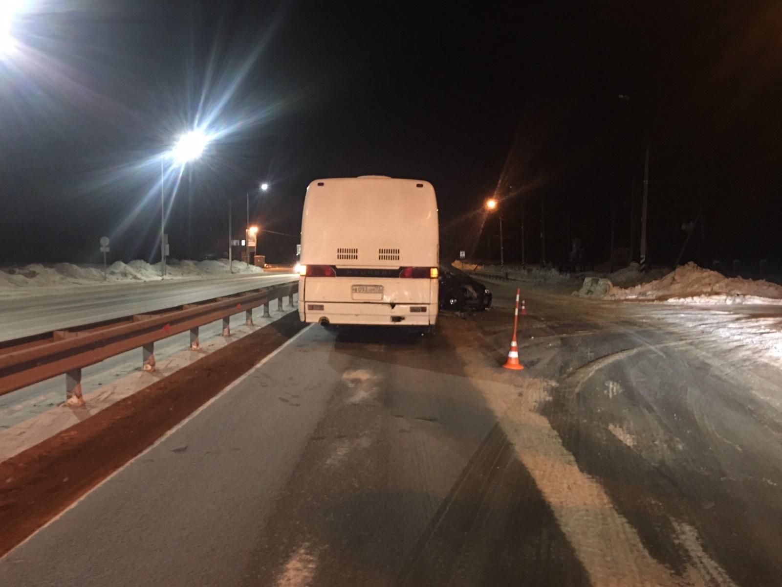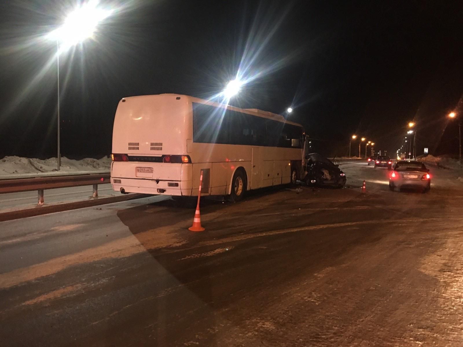В момент ДТП пассажиров в автобусе не было. Водитель легкового автомобиля был доставлен с тяжелыми травмами в больницу, где скончался. Ведется следствие.