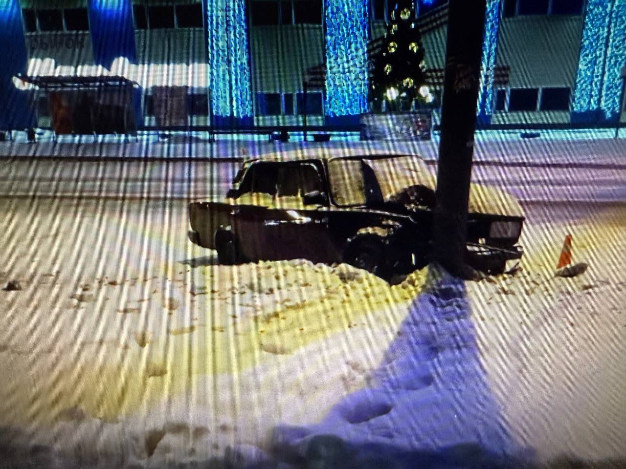 Автомобиль ВАЗ 2105 въехал в опору освещения на ул. Ямской, у дома №103. ДТП произошло в Тюмени накануне около полуночи.