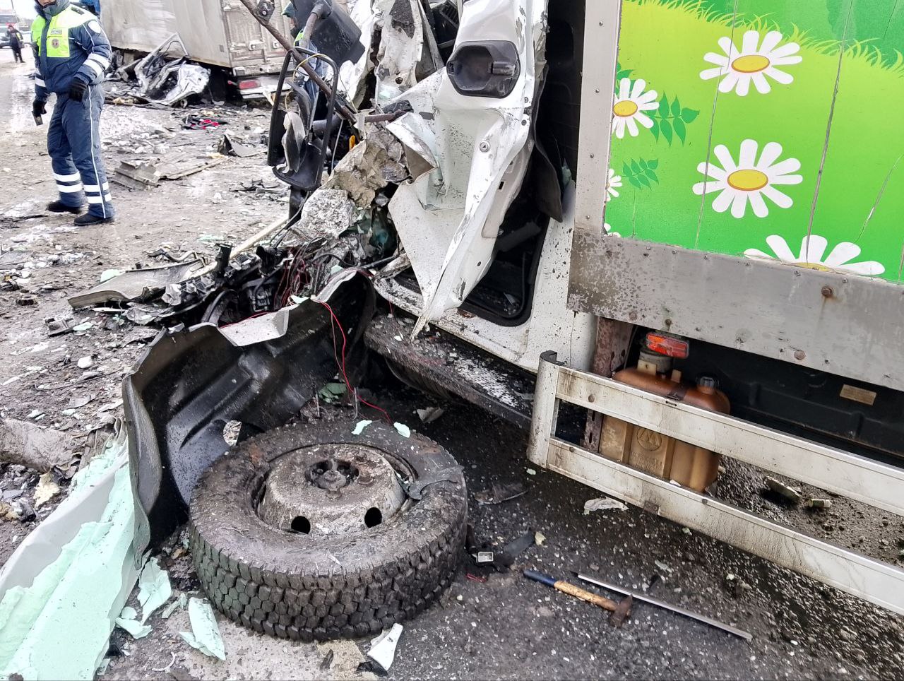 По предварительным данным Госавтоинспекции, на 32 километре фура «Вольво» выехала на встречную полосу, по дороге касательно задев автомобиль «Лада Гранта». Далее произошло столкновение с большегрузом «КамАЗ» и автомобилем «Ауди А6», после этого — лобовой удар с автомобилем «Газель Некст».