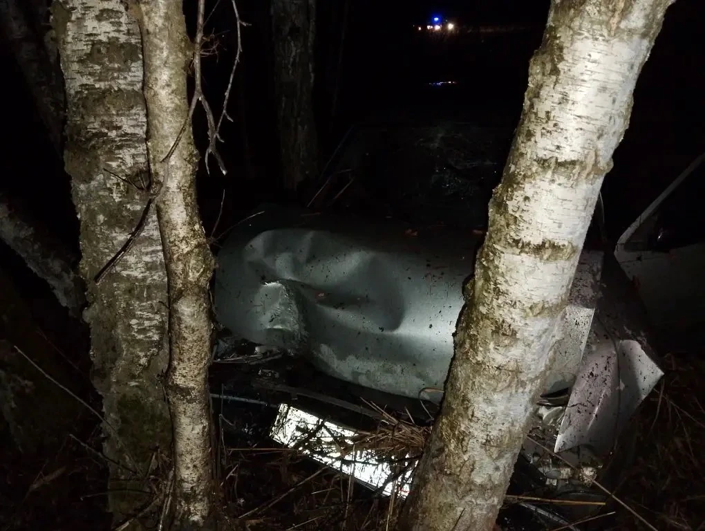 По предварительным данным, на трассе столкнулись два автомобиля. Один из них — «Дэу Нексия». В результате мощного удара корейскую иномарку отбросило на придорожные деревья. Водитель второго транспортного средства с места происшествия скрылся. Личность нарушителя и марка автомобиля в настоящий момент устанавливаются.