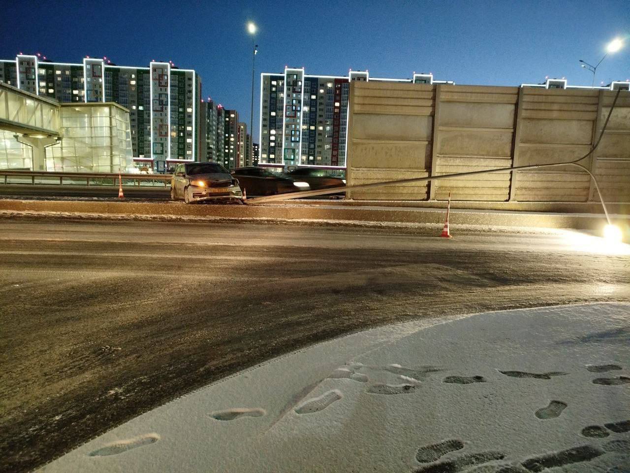 Автомобиль «Киа Рио» вчера въехал в столб уличного освещения на автодороге Тюмень — Боровский — Богандинский в Тюмени.
