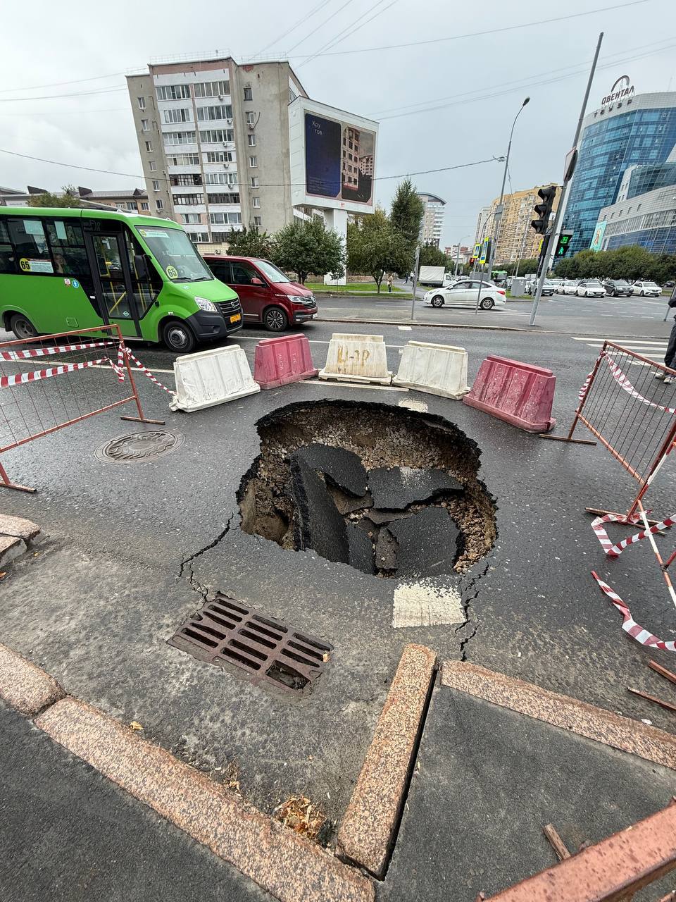 В Тюмени провалился асфальт на дороге в районе Дома Печати.