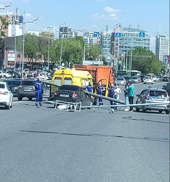 Один столб пробил насквозь «Ладу Гранта», ехавшую в сторону центра города. Повреждены еще три автомобиля.