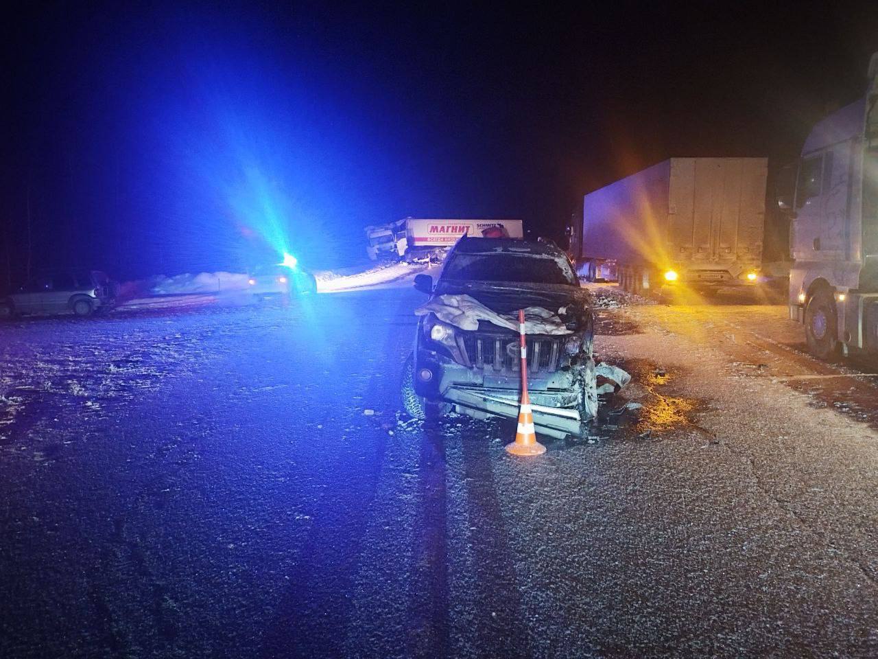 По предварительной информации Госавтоинспекции, водитель «Тойоты» выехал со второстепенной дороги на главную, не пропустив большегруз. Произошло столкновение. От удара «МАН» отбросило на второй грузовик.