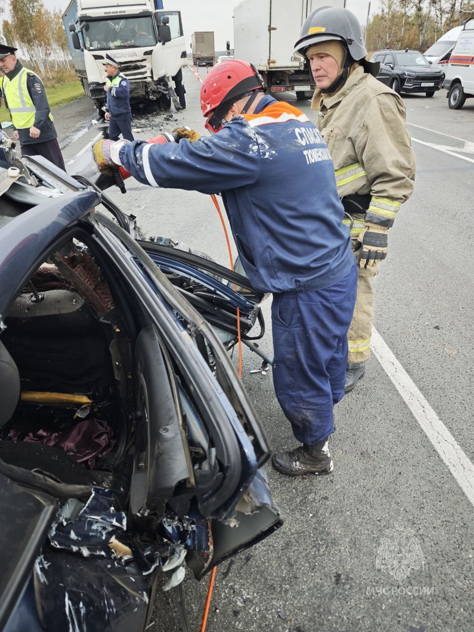 «Сотрудники экстренных служб проводят работы по деблокированию тел погибших и смыв топлива с проезжей части. На данном участке автодороги организовано реверсивное движение», — сообщает пресс-служба ГУ МЧС России по Тюменской области.