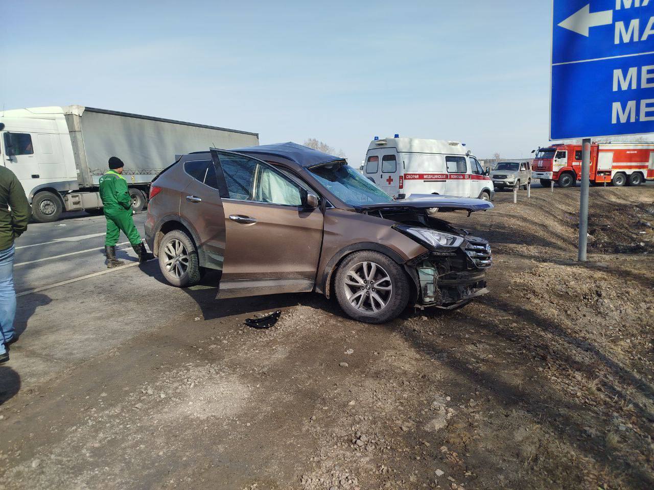 Большегруз «Даф» и «Хендэ Санта Фе» столкнулись сегодня в Ишимском районе, на 578-м километре федеральной трассы автодороги Челябинск -Курган- Омск-Новосибирск.