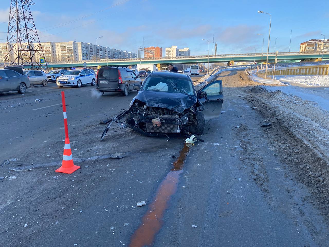 Массовое ДТП произошло в Тюмени сегодня, 31 декабря. «Лада» девятой модели, «Форд» и «Киа Рио» столкнулись на ул. 30 лет Победы, 132.