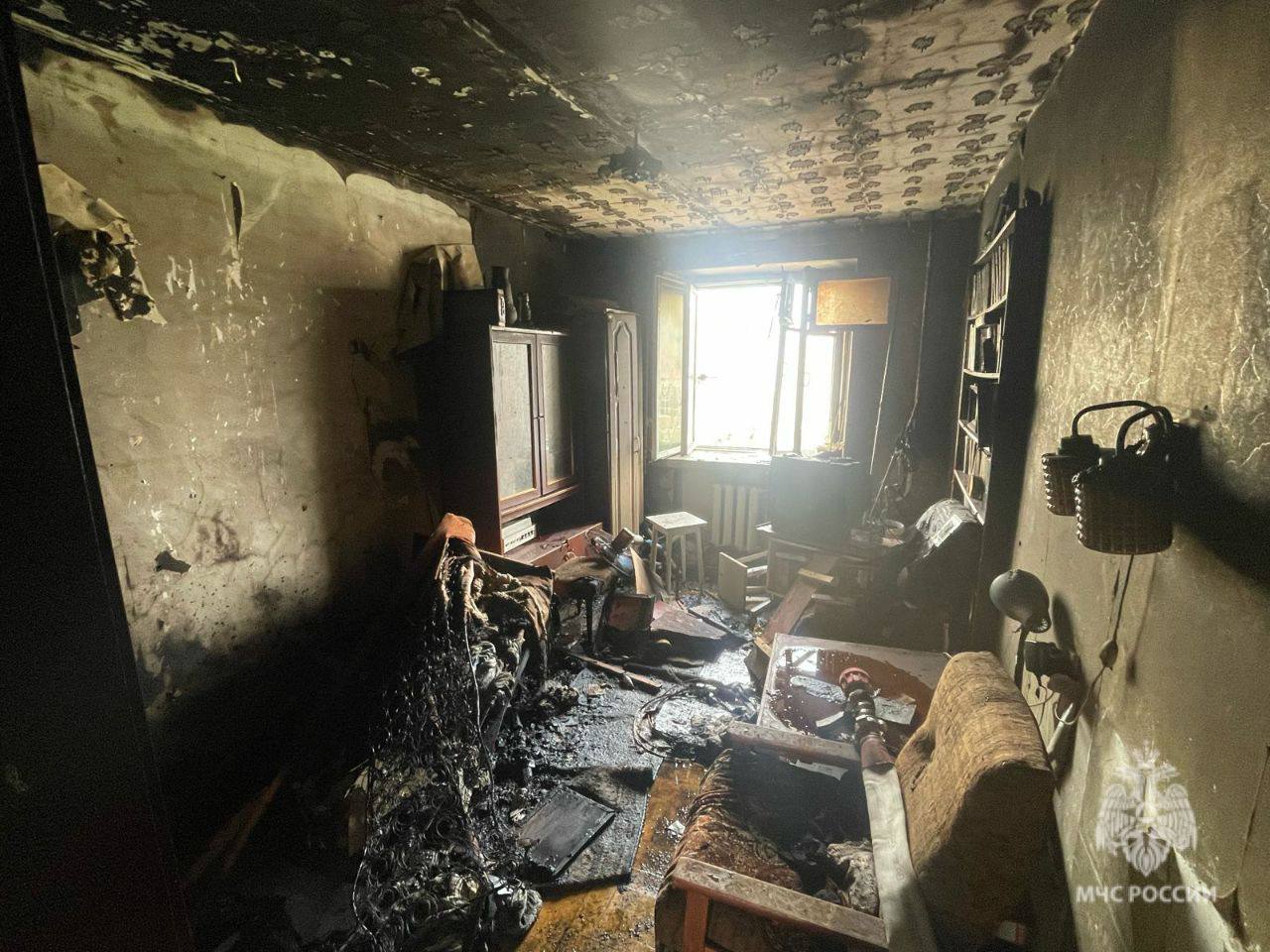 Сообщение о ЧП поступило в 14.26. На момент прибытия первого пожарно-спасательного подразделения наблюдался дым из окна квартиры на четвертом этаже.