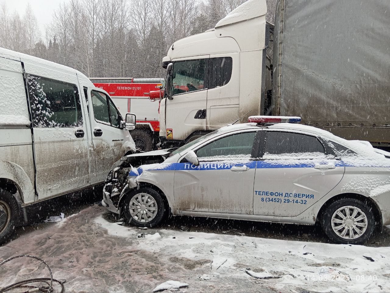 «После ДТП в автомобили спецслужб, прибывших на место трагедии, въехал большегруз „Скания“, водитель которого не смог вовремя затормозить. Повреждения получили две машины МЧС и патрульный автомобиль ДПС „Лада Веста“, во втором ДТП пострадавших нет», — рассказали в Госавтоинспекции.