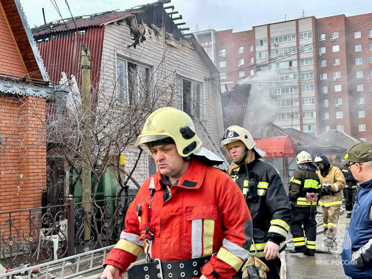 Огонь перекинулся на кровлю соседнего дома, но распространение огня удалось предотвратить.