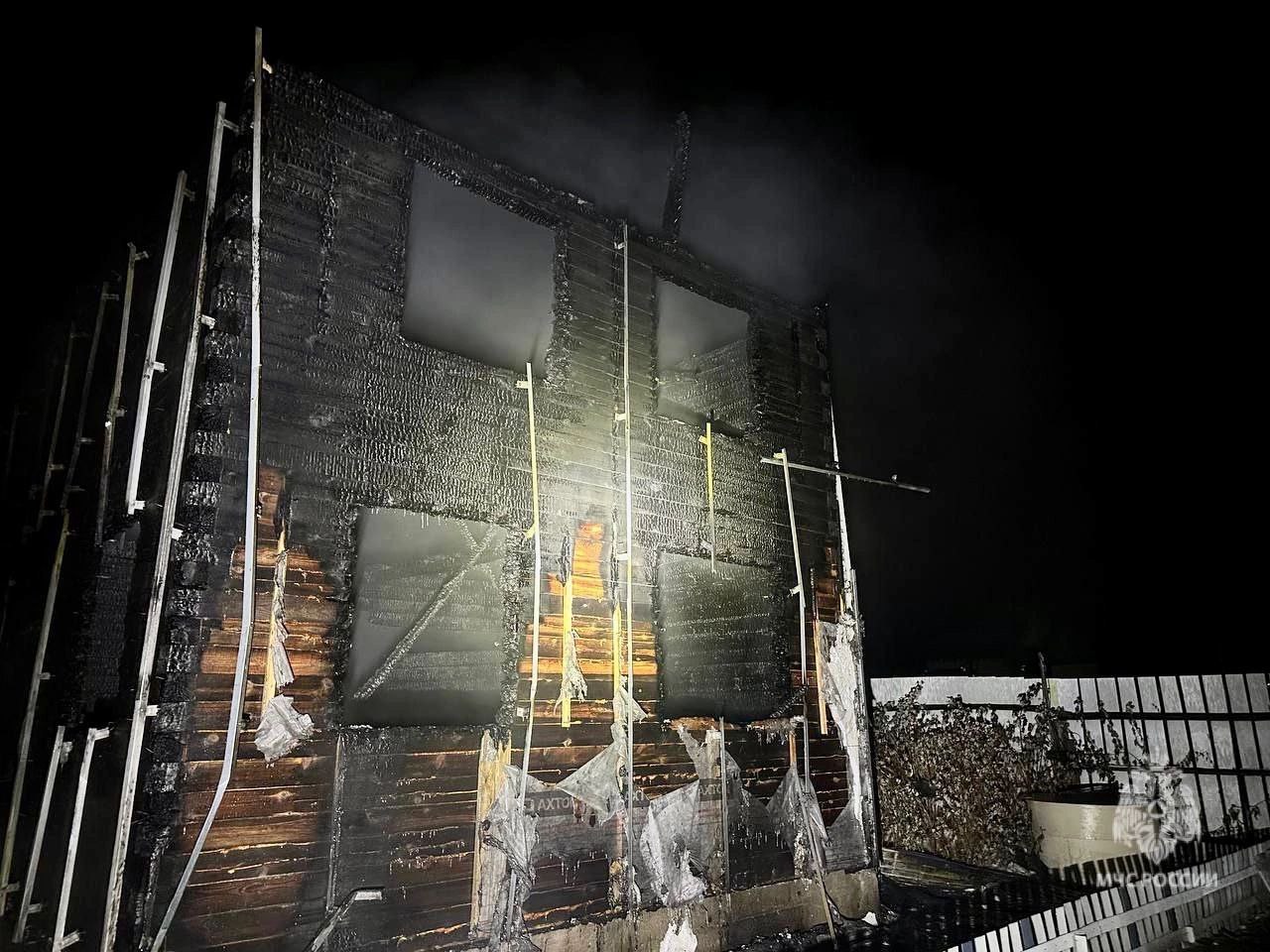 В Тюменском районе пожарные тушили двухэтажный жилой дом. Сообщение о ЧП в деревне Малые Акияры, на улице Туйчина, поступило около часу ночи 14 октября.