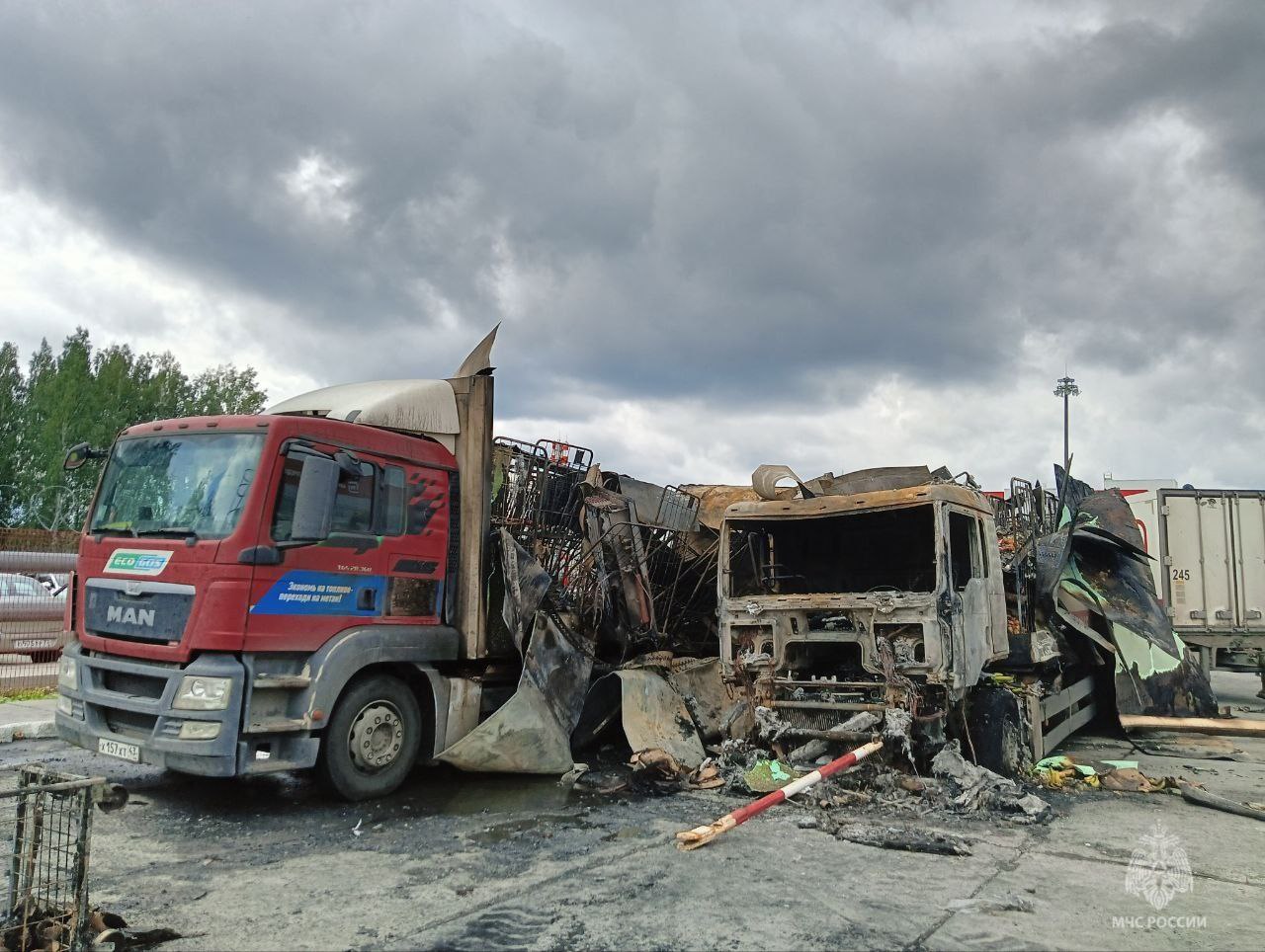 Огонь быстро перешел на ещё один грузовой автомобиль, припаркованный рядом. Прибывшие на место вызова огнеборцы оперативно ликвидировали пожар. В результате происшествия пострадавших нет, сообщает МЧС России и Противопожарной службы Тюменской области.