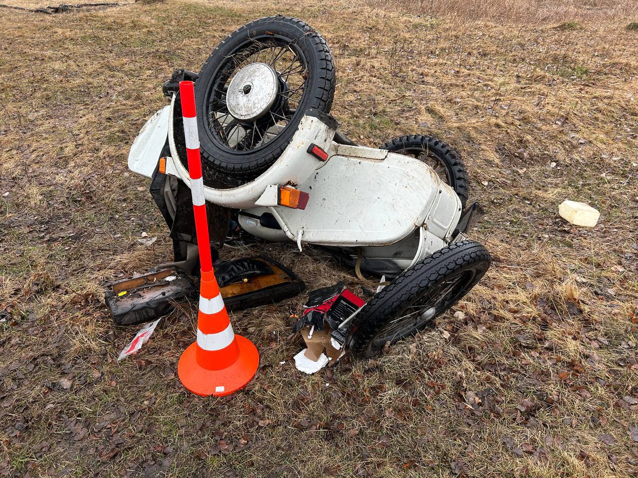 Мотоцикл «Урал» опрокинулся на лесной дороге в 850-и метрах от автодороги село Большое Сорокино — деревня Лыкошино.
