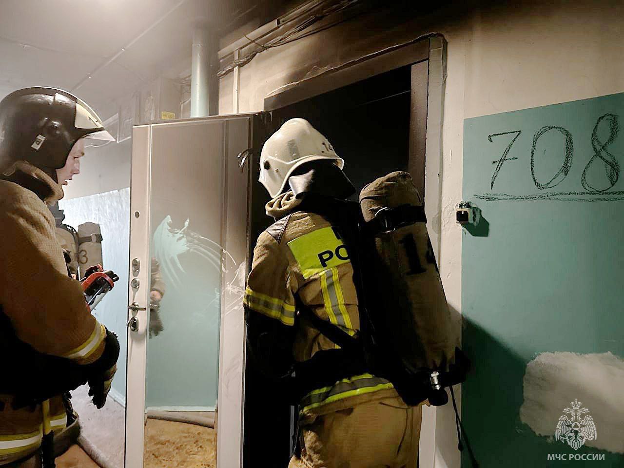 Пожарные эвакуировали из высотки 20 жильцов, еще восемь человек были спасены из зоны задымления. Дым из подъезда удалили с помощью дымонасоса.