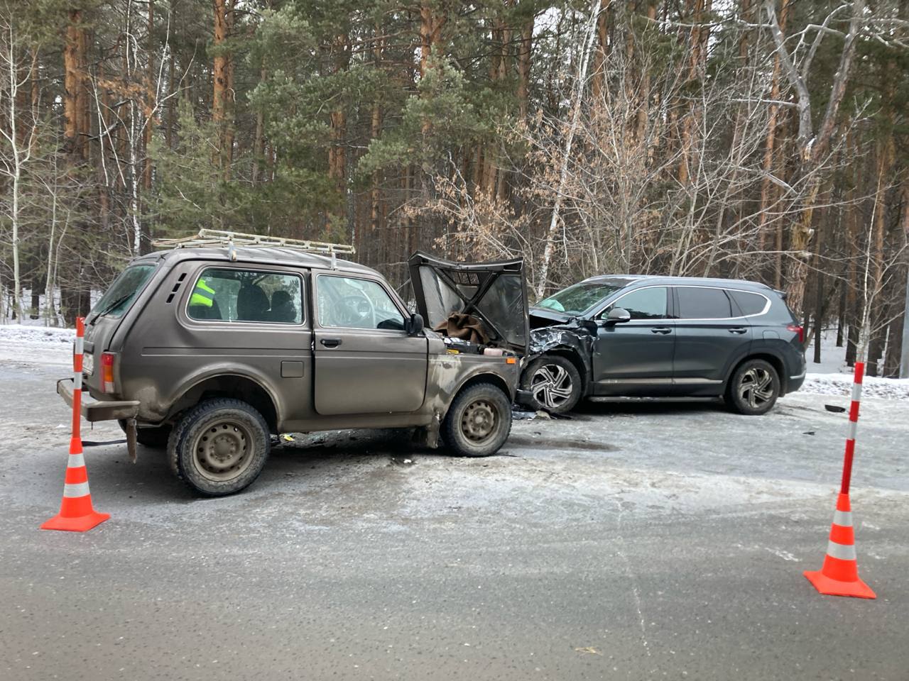 Здесь столкнулись «Нива» и «Хундай».