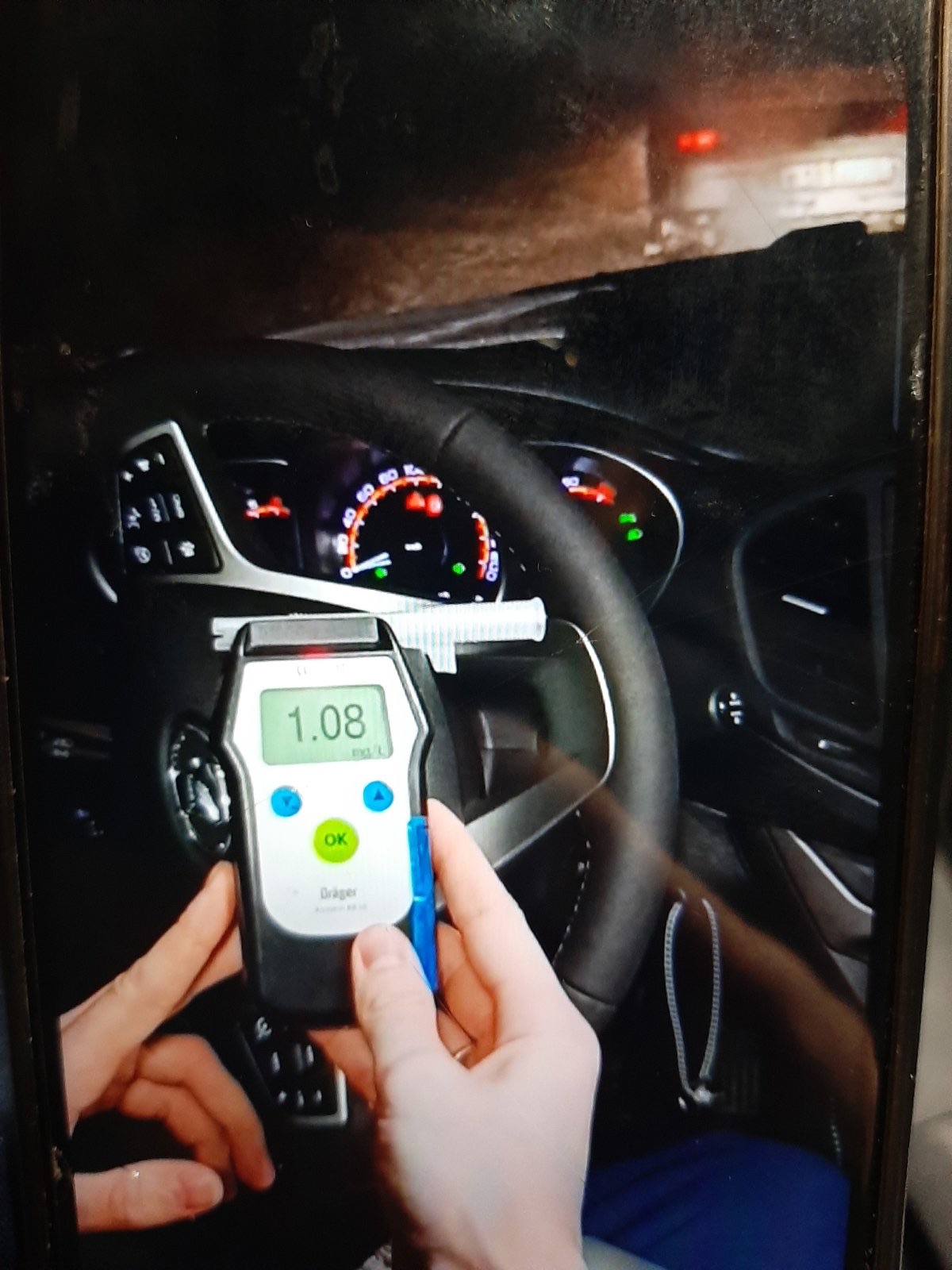 Показания алкотестера составили 1,08 мг алкоголя на литр выдыхаемого воздуха.