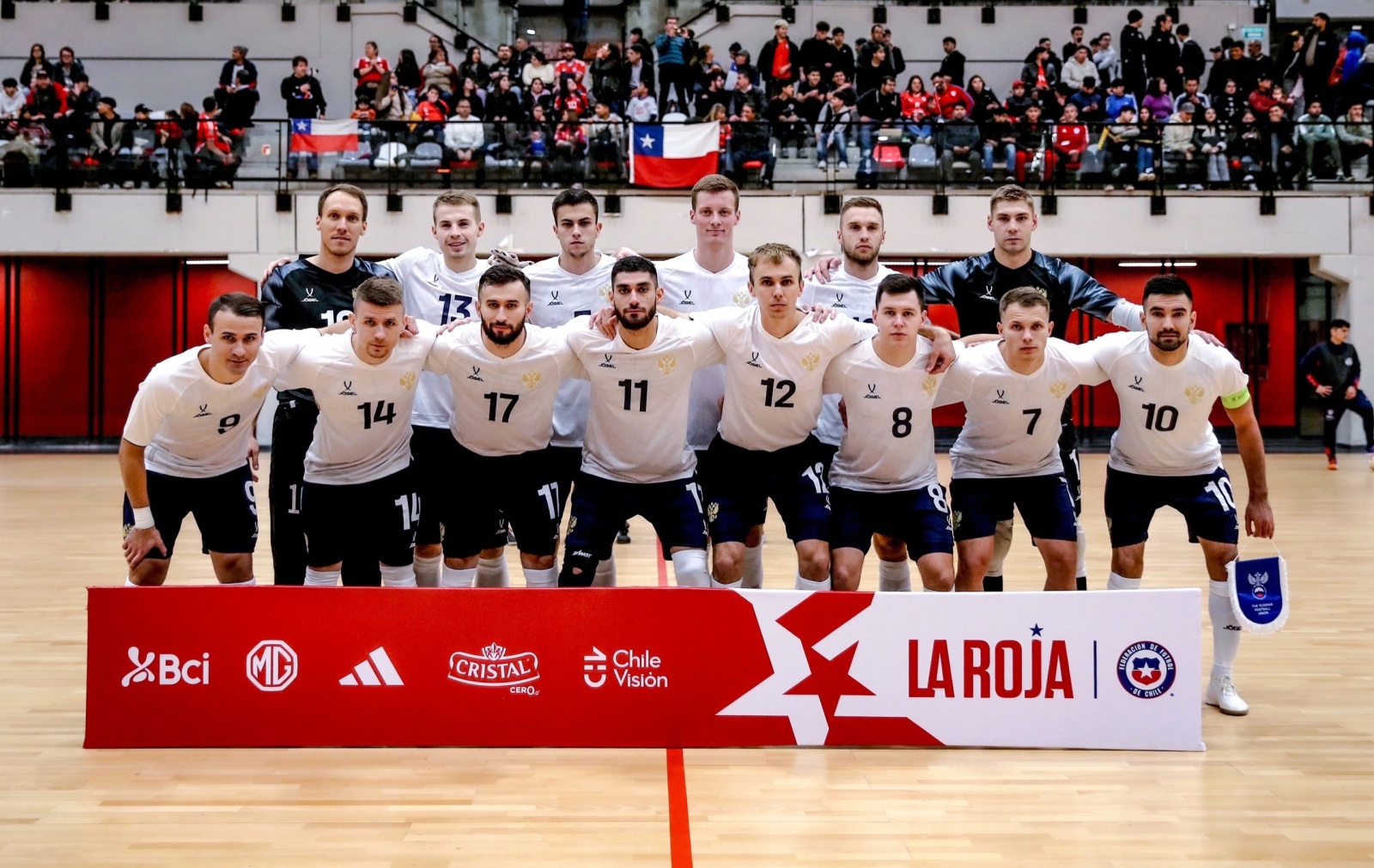 Национальная сборная России по футзалу проводит товарищеские встречи против чилийской команды во дворце спорта Polideportivo Estadio Nacional. В составе нашей команды — игрок МФК «Тюмень» Камиль Герейханов.
