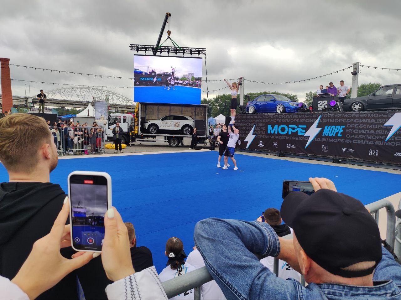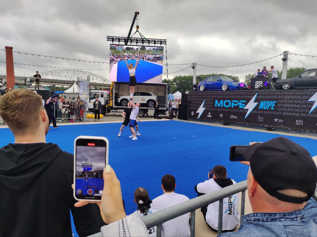А вокруг компактной площадки фестиваля чирлидинга «МореМоре» с самого начала стояла плотная толпа зрителей. Уже во время разминки хрупкие спортсменки взлетали в небо и замирали, как статуэтки, под восторженные вздохи окружающих.