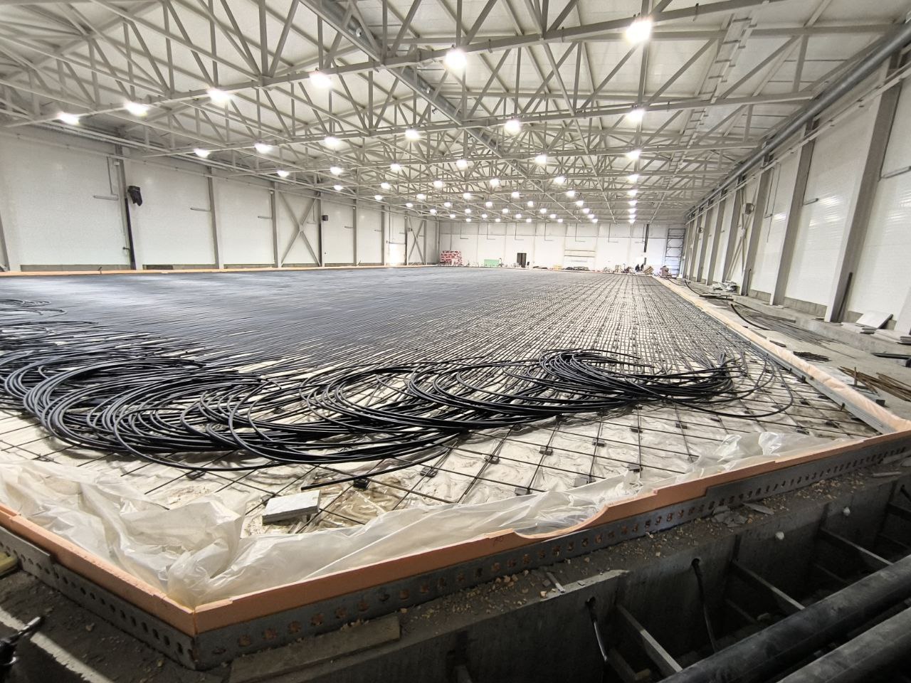 Под ледовым полем уже смонтирован контур отопления, который защитит спортивный объект от промерзания грунта. Строители завершают работы на системе охлаждения, сообщает пресс-служба Главного управления строительства Тюменской области.