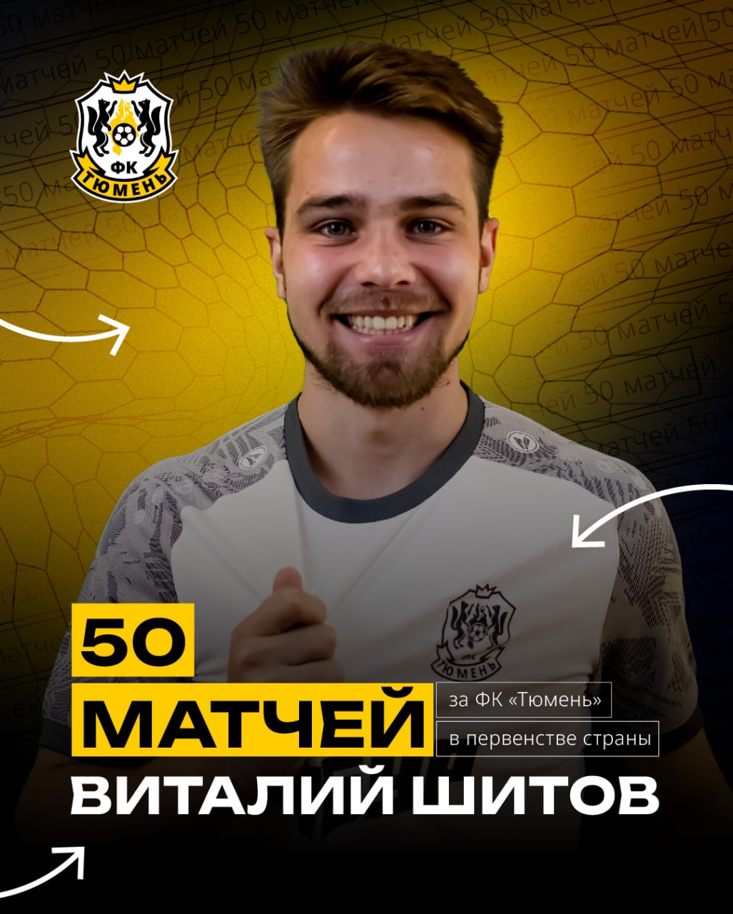 Полузащитник Виталий Шитов, выступающий под №17, провел 50-й матч за ФК «Тюмень» в рамках первенства России. Это случилось накануне в домашнем поединке с «Волгарем» в рамках Золотой группы LEON-Второй лиги «А». Болельщики признали игрока лучшим в этом матче.