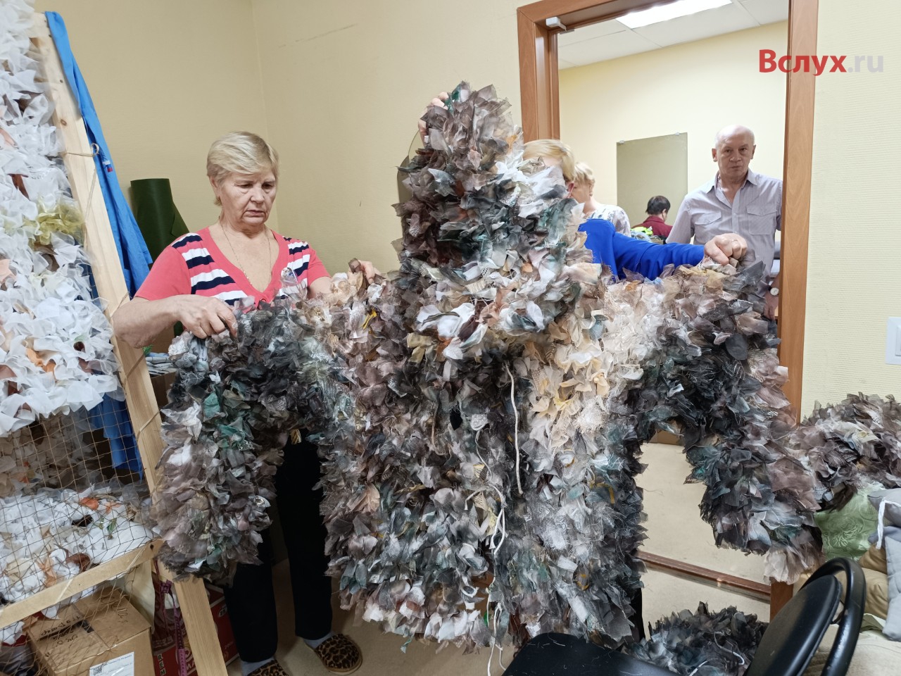 На Войновке тюменки плетут для российских снайперов и разведчиков уникальные маскировочные сети и костюмы из старых тюлевых штор и занавесок. Тюль дает объем. Она красится под местный ландшафт и отлично скрывает технику и людей от вражеских дронов. Местные активистки уже изготовили 26 таких сетей. С мастерицами пообщался корреспондент «Вслух.ру».