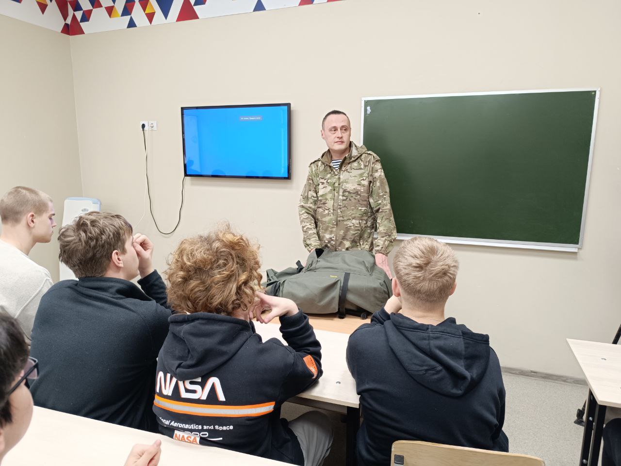 На встрече в «Алом парусе» школьники засыпали Кирилла вопросам о первом бое, чувстве страха, критических ситуациях, когда жизнь висела на волоске. Кирилл рассказал, как в мае во время штурма перевернулась их моторная лодка на Днепре.