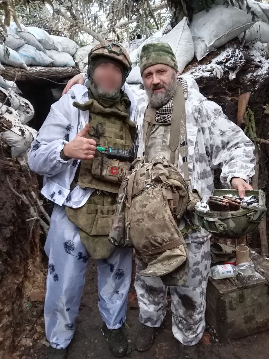 Решил вернуться один. Обстрел не прекращался. Еще неделю мы прожили в окопах, ожидая благоприятной для эвакуации погоды. И вот этот день наступил: туман, дождь со снегом, обледенение. В такую погоду дроны не летают. Пересекая в очередной раз минное поле на велосипеде по своему следу, было больше уверенности в своей безопасности. Меня заметили, но из-за тумана и плохой видимости обстрел был хаотичным. Били из минометов. Пройдя меньше половины пути с Валом, я запросил помощи. Ко мне на встречу по минному полю выдвинулся Прибалт с охотничьим ружьем-пятизарядкой. Это едва ли не самое эффективное средство борьбы против дронов. Сменив меня, Прибалт потащил погибшего замполита. Я в это время контролировал небо с ружьем. К счастью, нам удалось выбраться. Вал был с почестями похоронен до Нового года.