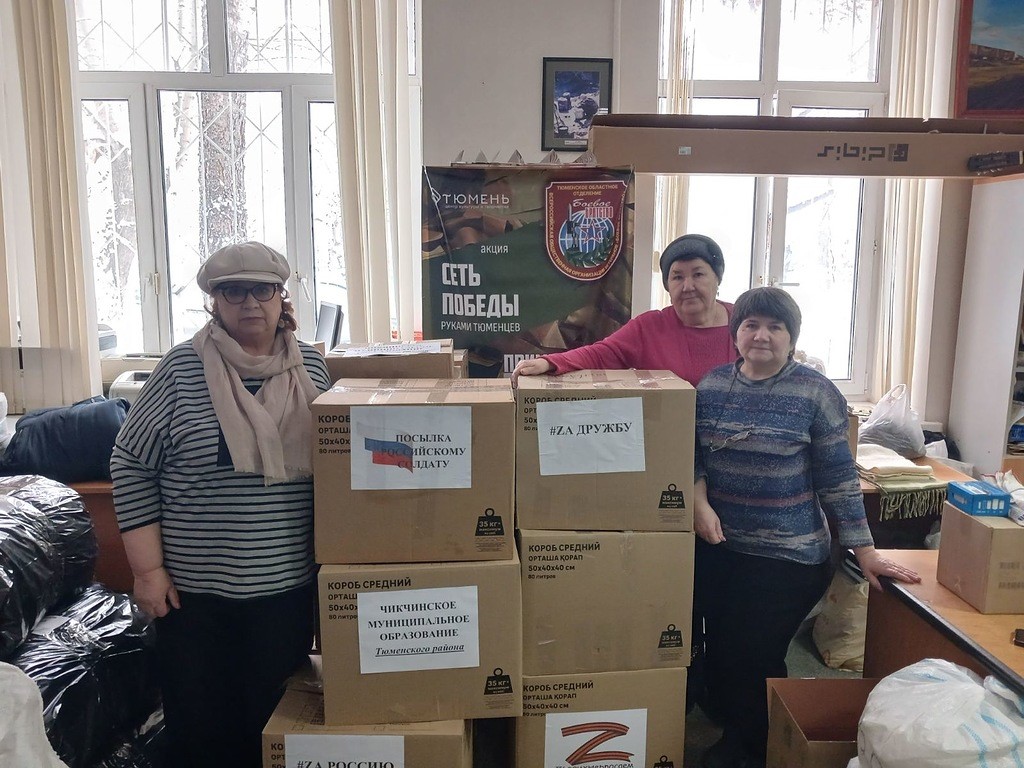 Накануне председатель думы Чикчинского муниципального образования Тюменского района Равиля Афлетунова и председатель совета ветеранов этого муниципального района передали в Тюменское областное отделение «Боевое Братство» партию гуманитарной помощи, адресованной нашим землякам, воюющим на Донбассе.