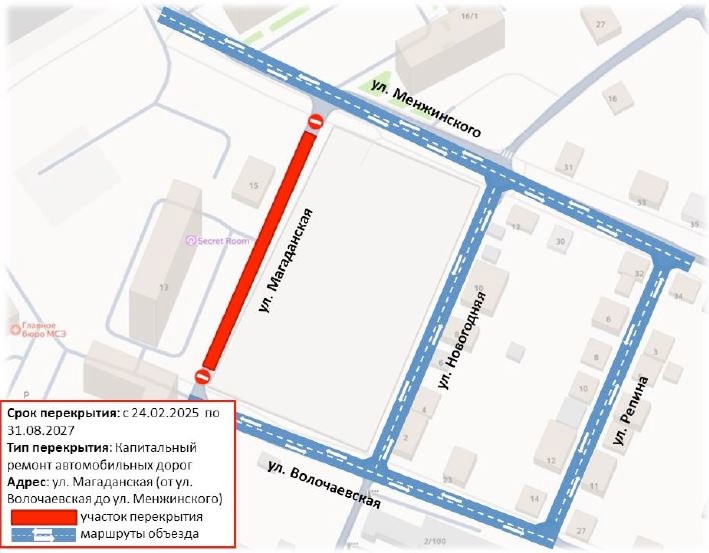 Кроме того, с 24 февраля по 31 августа перекроют улицу Магаданскую от Волочаевской до Менжинского. Здесь пройдет капитальный ремонт дороги, сообщает городской департамент дорожной инфраструктуры и транспорта.