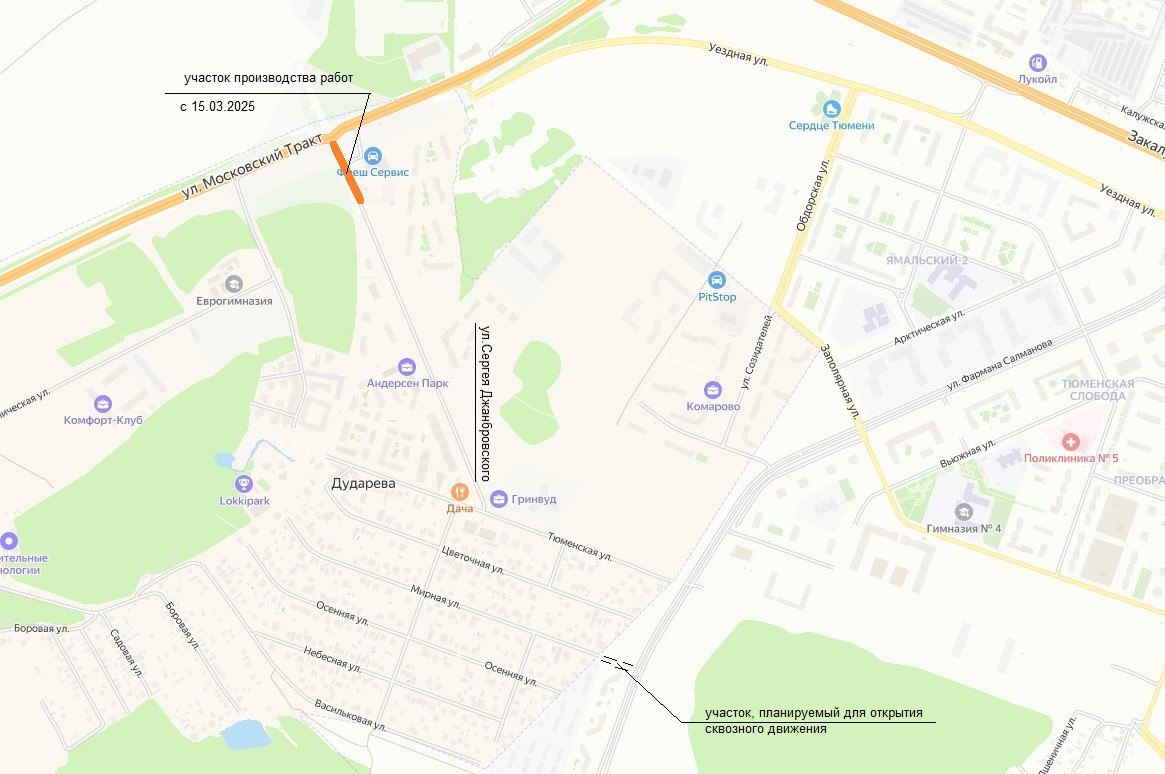 Сквозной проезд организуют через улицы Мирная и Тюменская в районе Дударева.