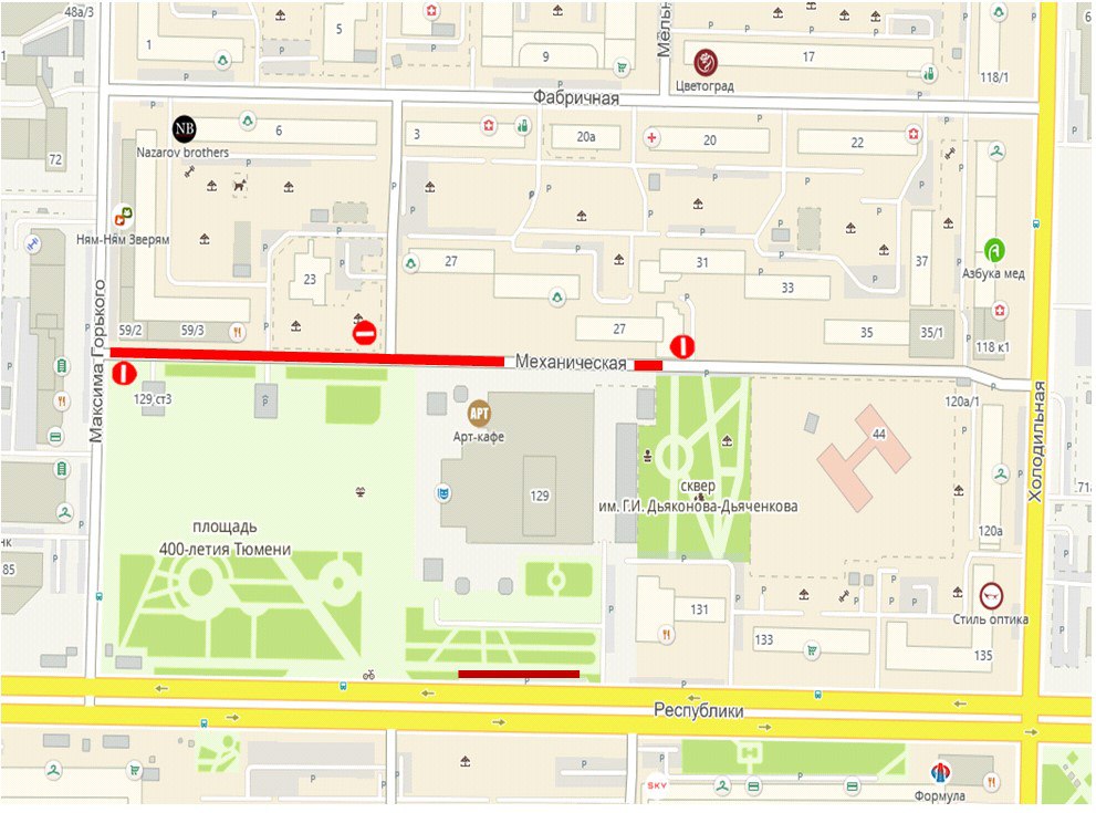 9 мая с 7 до 23 часов закроют участок на улице Механической от дома № 27 до улицы Максима Горького. Также планируется исключить использование парковок в районе здания № 129 на время праздника.
