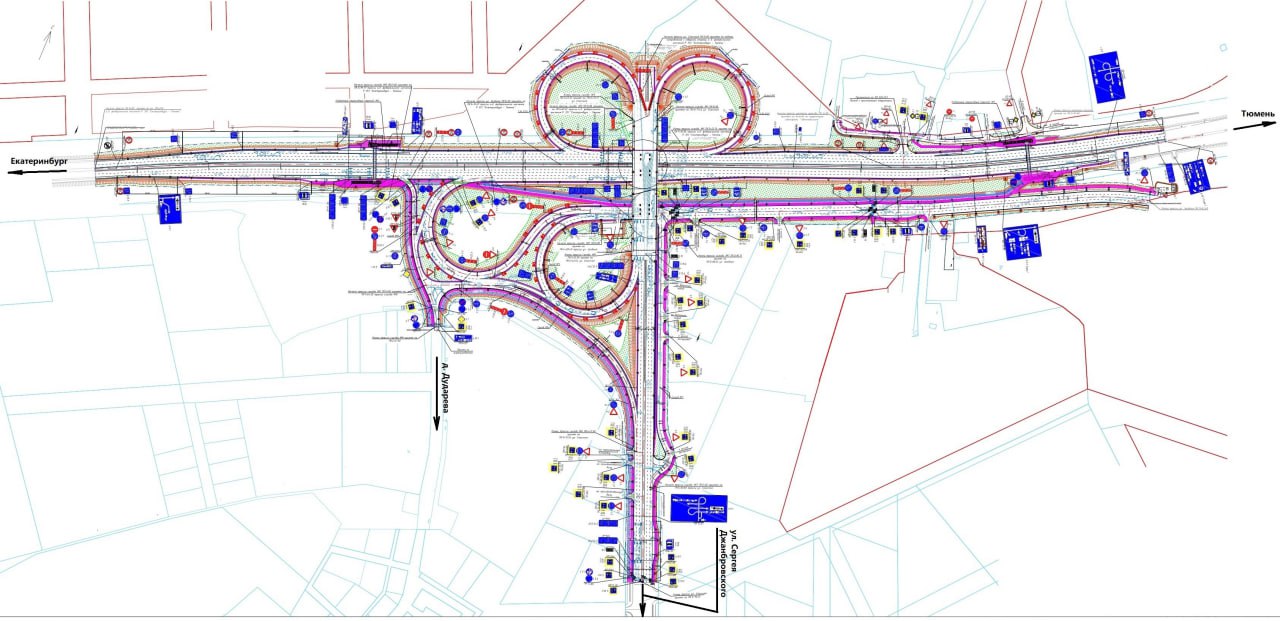 Заключен контракт на строительство развязки на пересечении трассы Екатеринбург — Тюмень и улицы Сергея Джанбровского. Проект будет реализован до ноября 2026 года.