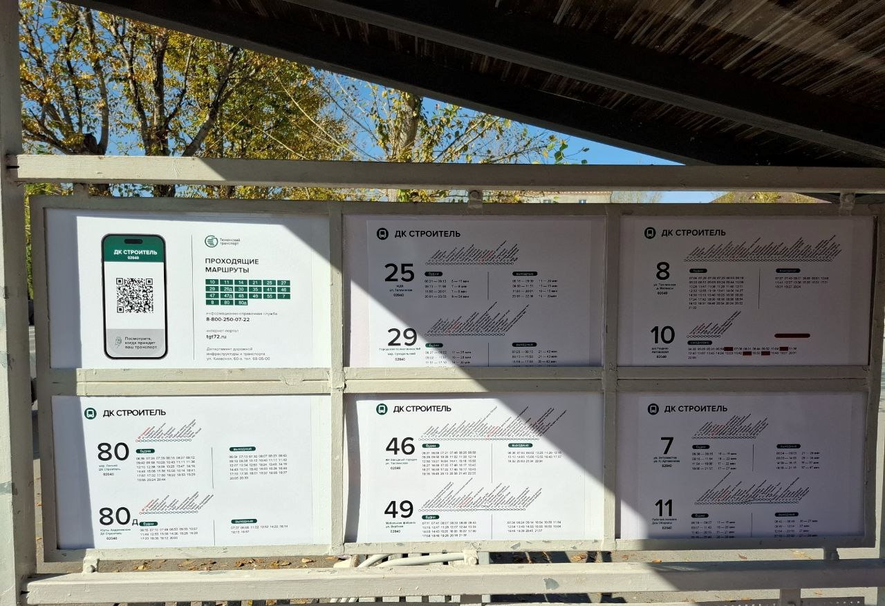 В Тюмени приступили к монтажу новых аншлагов с расписанием автобусов. Первый появился на остановке «ДК «Строитель».