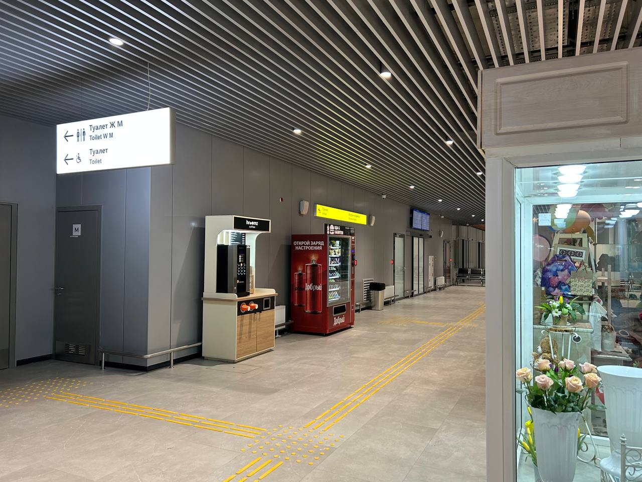 Киоски авиакомпаний, где можно приобрести авиабилеты, теперь находятся рядом с комнатами отдыха и кладовой для хранения. К слову, на первом этаже теперь нет туалетов — только на втором. Второй этаж также частично огорожен, небольшого зала ожидания больше нет. Все остальное пока на месте.