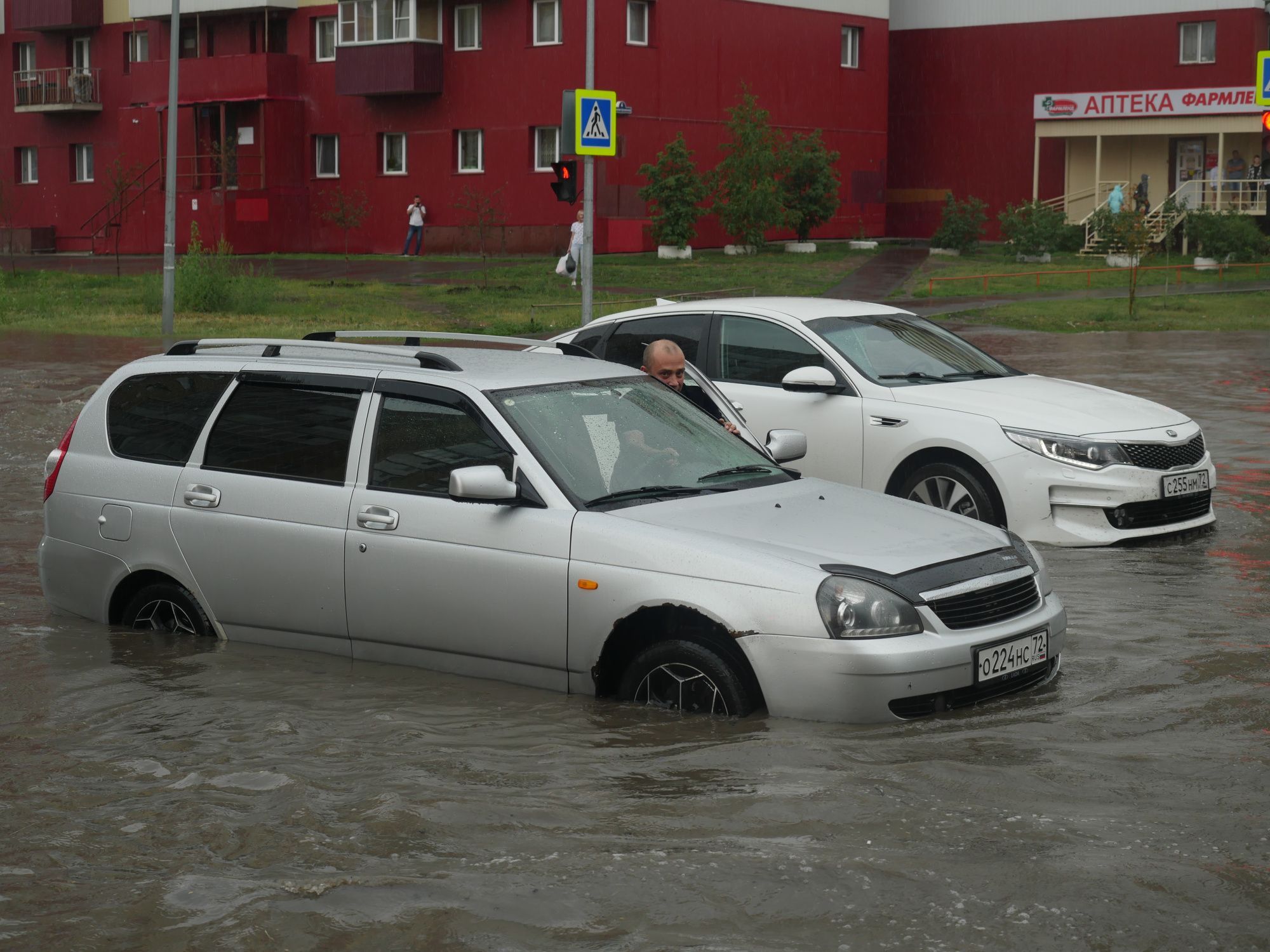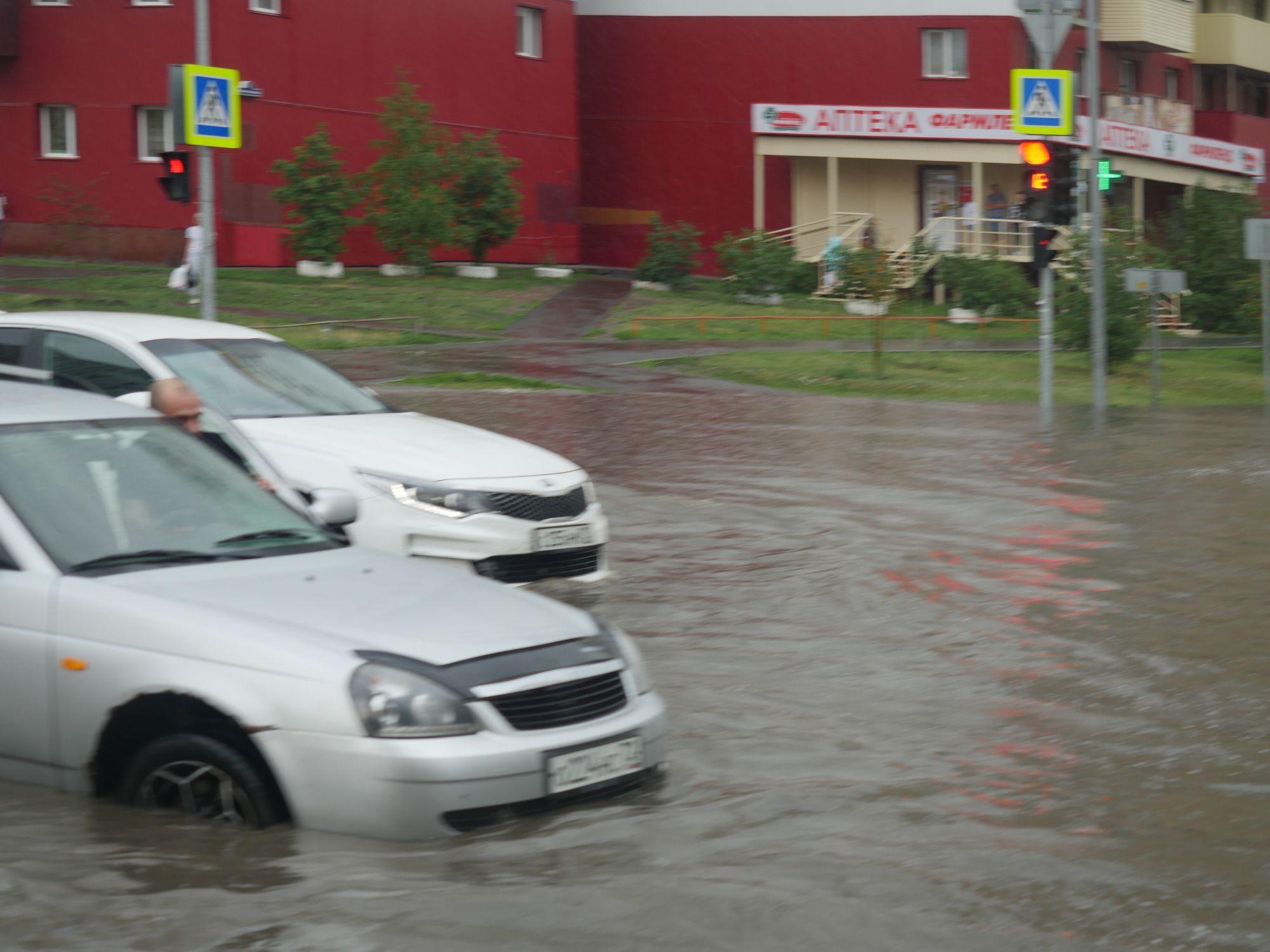 Ввода заливала двигатель, моторы глохли, очевидцы заходили в воду и помогали откатывать машины. Особенно отличился, помогая попавшим в беду автомобилистам и автомобилисткам молодой человек в сланцах. Он пояснил, что живет рядом, как увидел, что творится, сразу же выбежал на улицу, помог выкатить из воды не меньше пяти машин. Парень уверяет, что вода теплая. Он остался на месте, вдруг кому-то еще потребуется помощь.