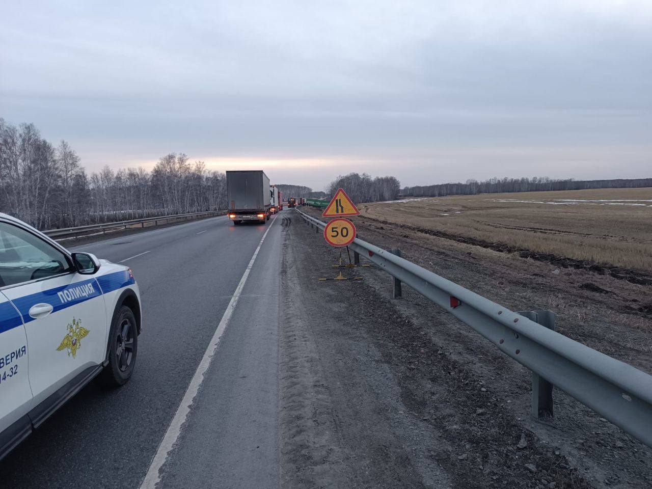 Временные знаки снижения скорости движения установлены на участке федеральной автодороги Челябинск-Курган-Омск-Новосибирск в Бердюжском районе Тюменской области, где вчера произошло смертельное ДТП.
