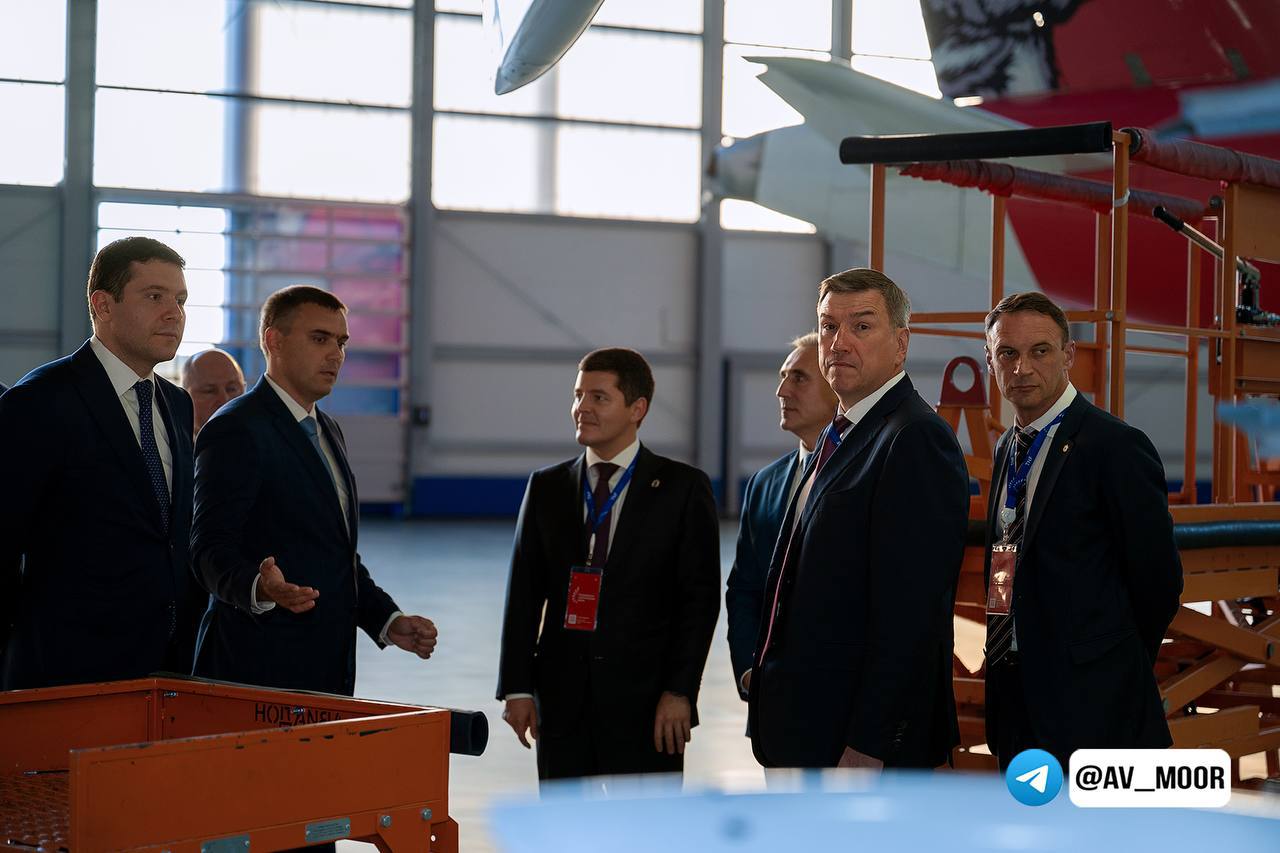 Ангар осмотрели министр промышленности и торговли РФ Антон Алиханов с губернаторами Тюменской области Александром Моором и Ямало-Ненецкого автономного округа Дмитрием Артюховым.