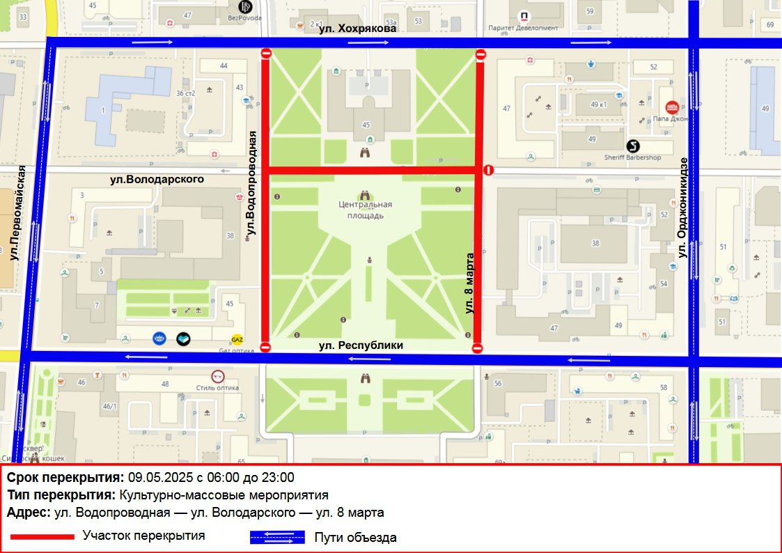 Улицы Республики и Ленина будут закрыты от Коммунистической до Первомайской.