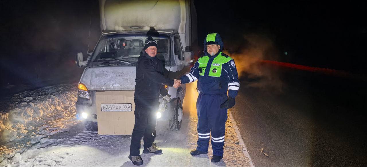 Сотрудники Госавтоинспекции Тюменской области на федеральных трассах в мороз помогают водителям из разных государств и регионов России.
