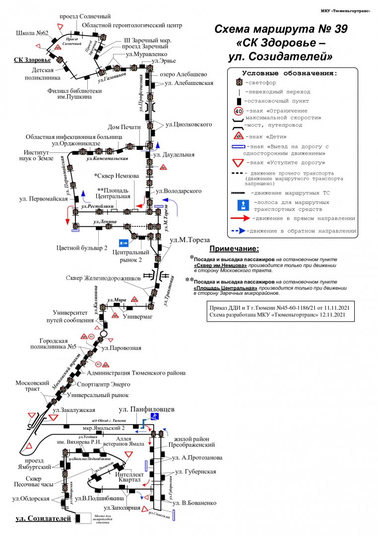 В Тюмени с 20 ноября из схемы движения маршрута №39 «СК „Здоровье“ — ул. Созидателей» исключаются остановочные пункты «ул. Панфиловцев» и «ул. Закалужская» в обратном направлении.